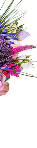 4 Pink / Lavender Roses, 2 White Calla Lilies, Purple Vanda Orchids, Blue Agapanthus, Bouvardia
